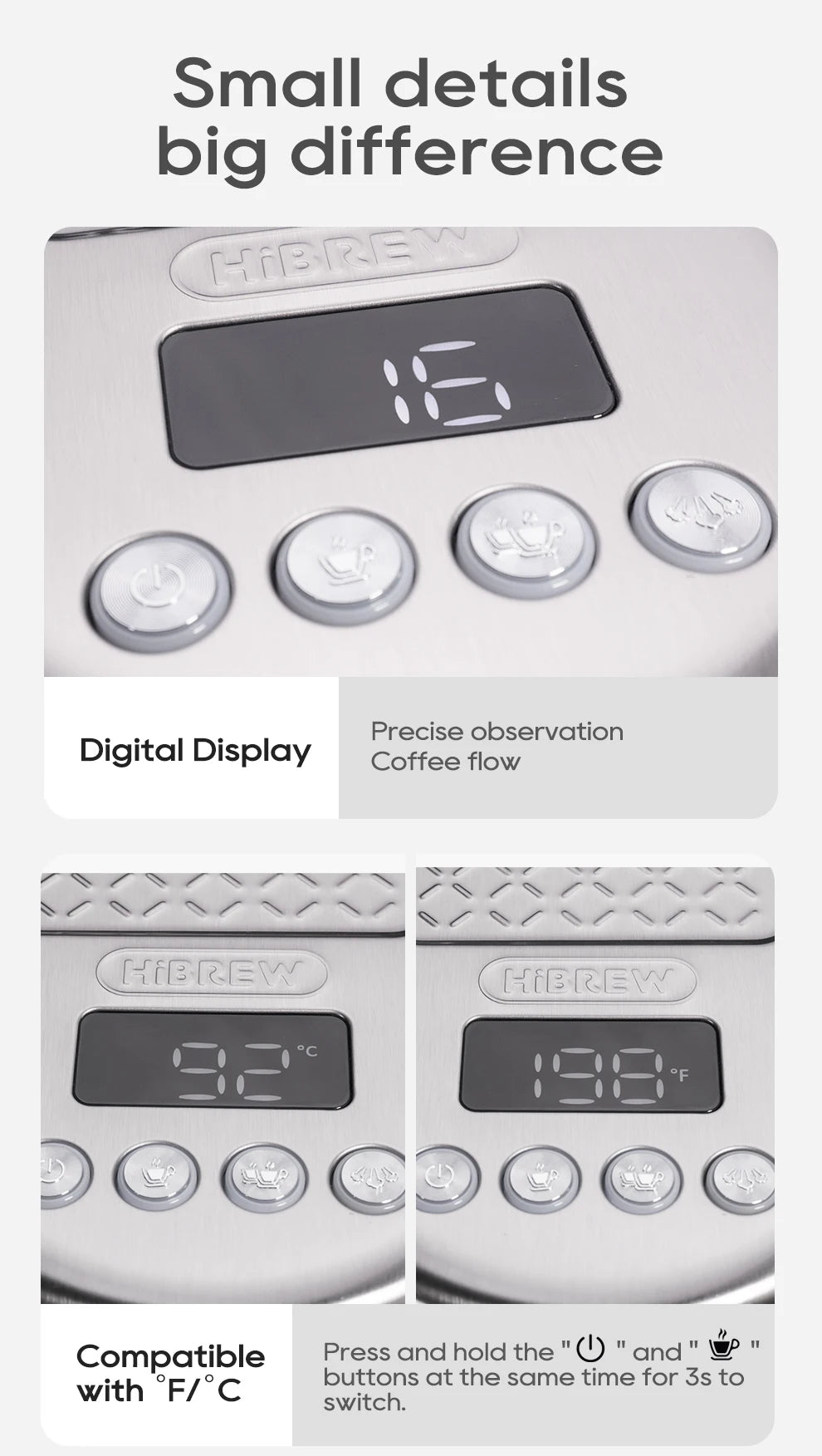 HiBREW 20Bar Semi Automatic Espresso Coffee Machine Temperature Adjustable Cold/Hot Super Slim Coffee Maker Cappuccino H10B