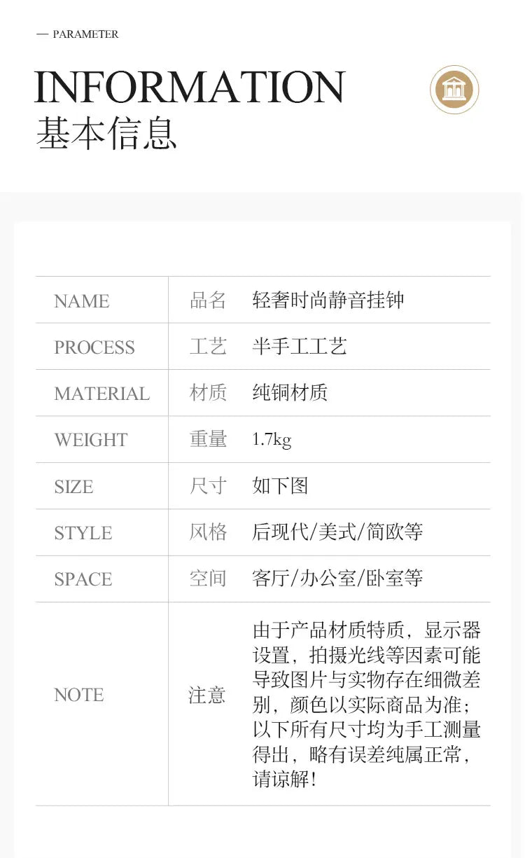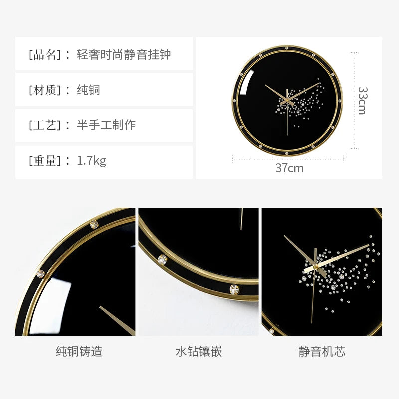 Nordic Light Luxury Wall Clock – Pure Copper, Silent Movement, Creative Living Room Decor